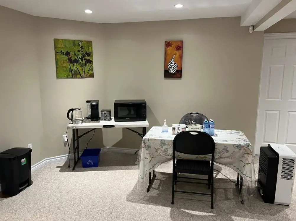 Lits et oreillers confortables, cafetière Keurig et tasses K, petit réfrigérateur, bouilloire, micro-ondes, articles de toilette. Bon emplacement calme, promenez-vous des magasins et restaurants Stavanger Drive.